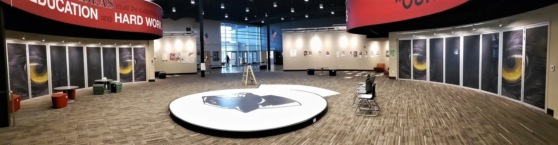 We work with reps all over the country on projects that range from large scale installations and renovations, to full rebrands of their school and mascot. Telling the history of the school while bringing visual impact to the space helps grow school pride for new students.